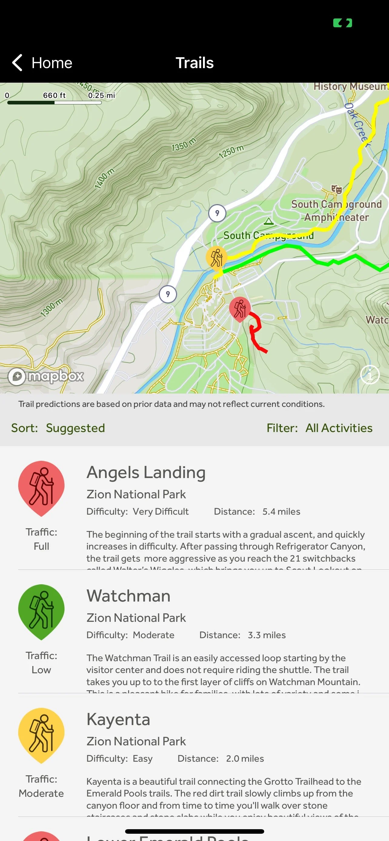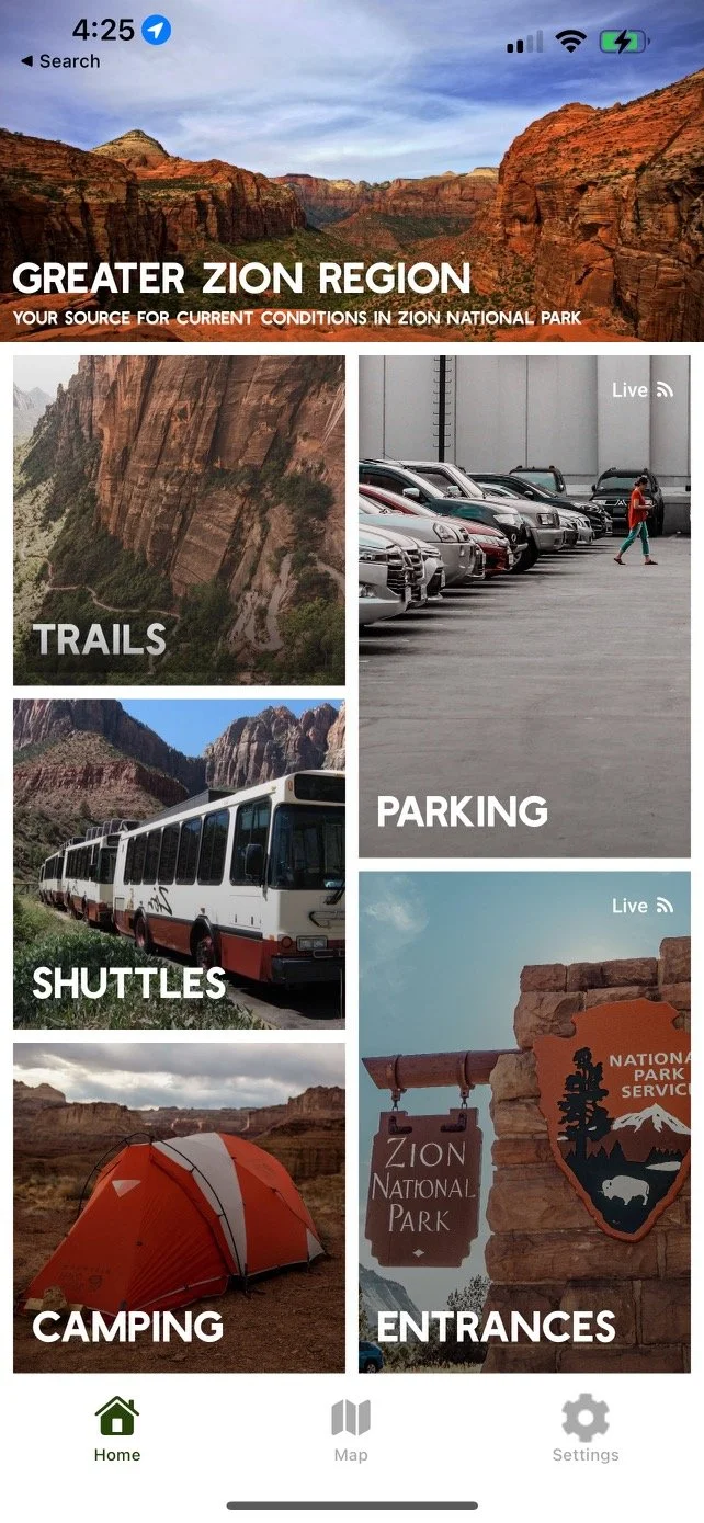 Greater Zion App. Currently live in the app store with hundreds of weekly users. The app is for customers that are traveling to Zion Nation Park in Springdale, Utah. The app is used to show various updates to parking lot capacities, show different hiking trails around, view different campgrounds the park has to offer, and most important shuttle updates.