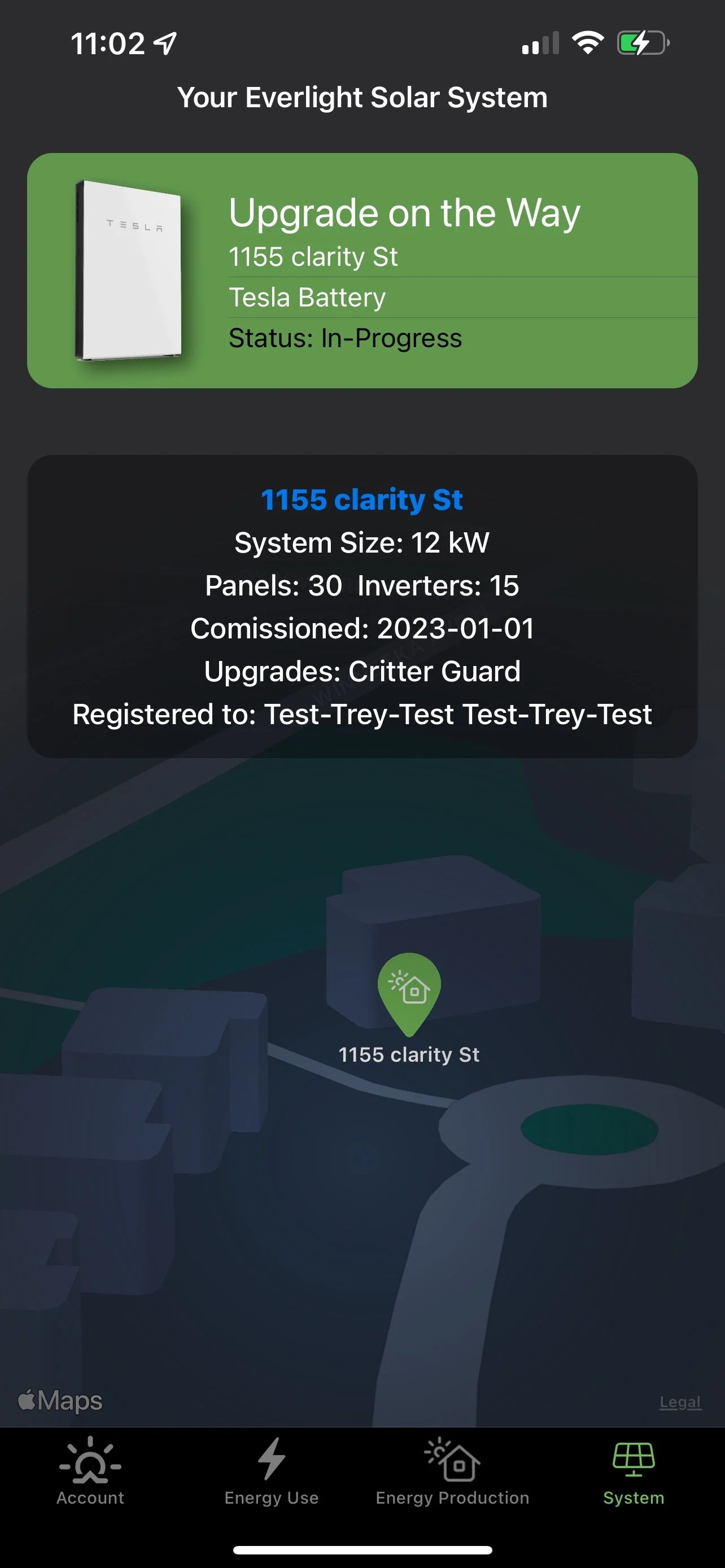 Everlight Solar app. Currently live in the app store with hundreds of weekly users. The app is for customers getting a solar system installed on their home. The app lets customers track their solar install process. track their homes energy usage and solar energy production, fill out various forms and upload documents needed throughout the solar install process.